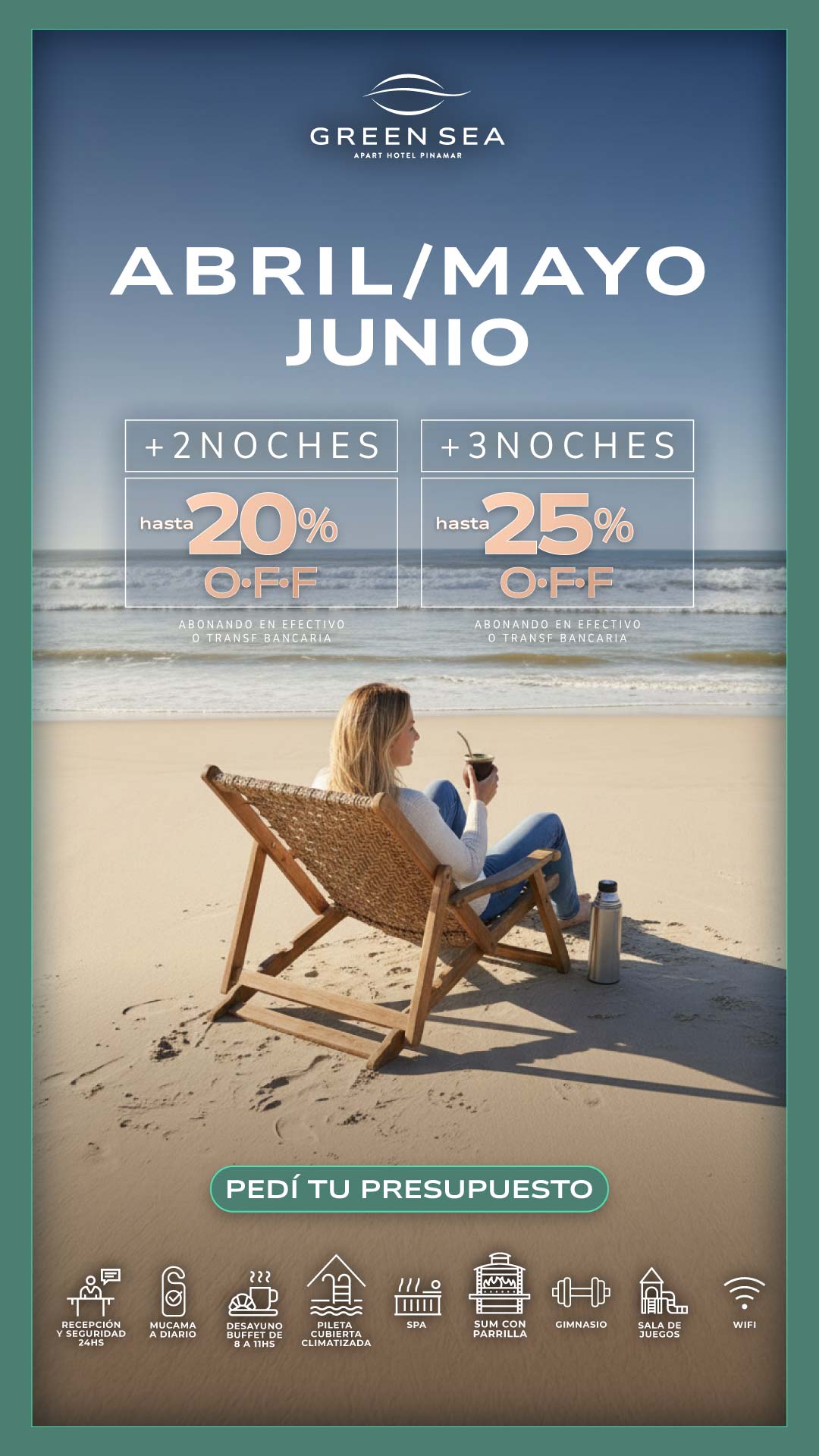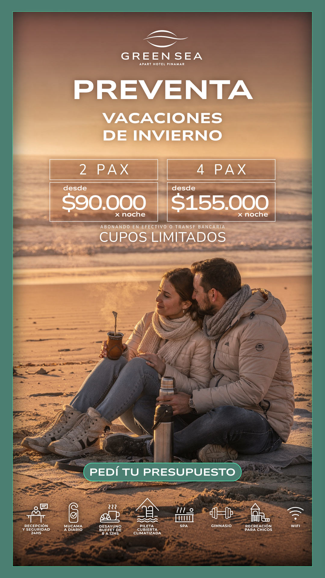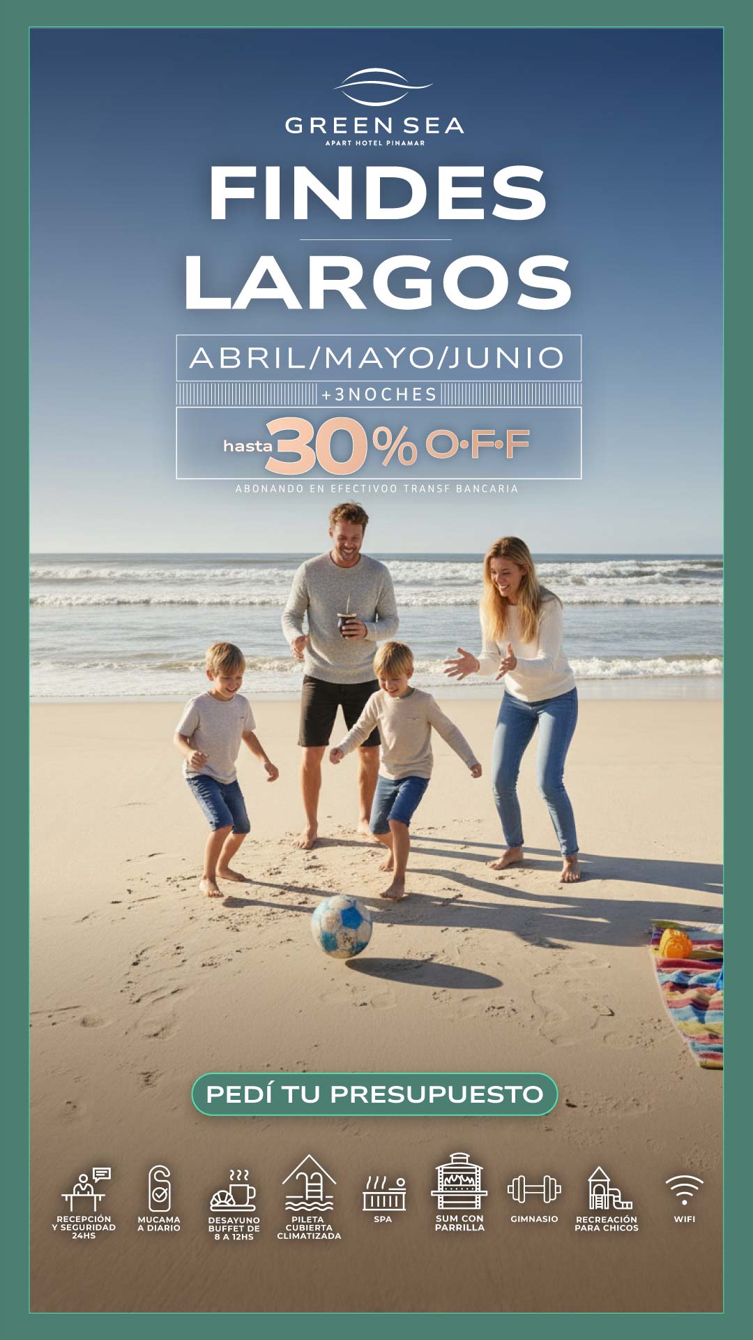Nuestros exclusivos servicios hoteleros son imprescindibles para tus vacaciones perfectas. Todo el ano te ofrecemos recepcion 24 hs, servicio diario de mucama, desayuno buffet, gimnasio, pileta descubierta (verano)* / pileta cubierta climatizada (invierno)*, sala de juegos con mesa de ping pong, metegol, y juegos ludicos para los mas pequenos, servicio de recreacion para ninos a cargo de personal especializado (fines de semana largos, vacaciones de invierno y de verano), WIFI en todo el apart, sala de lectura y TV y mucho más.